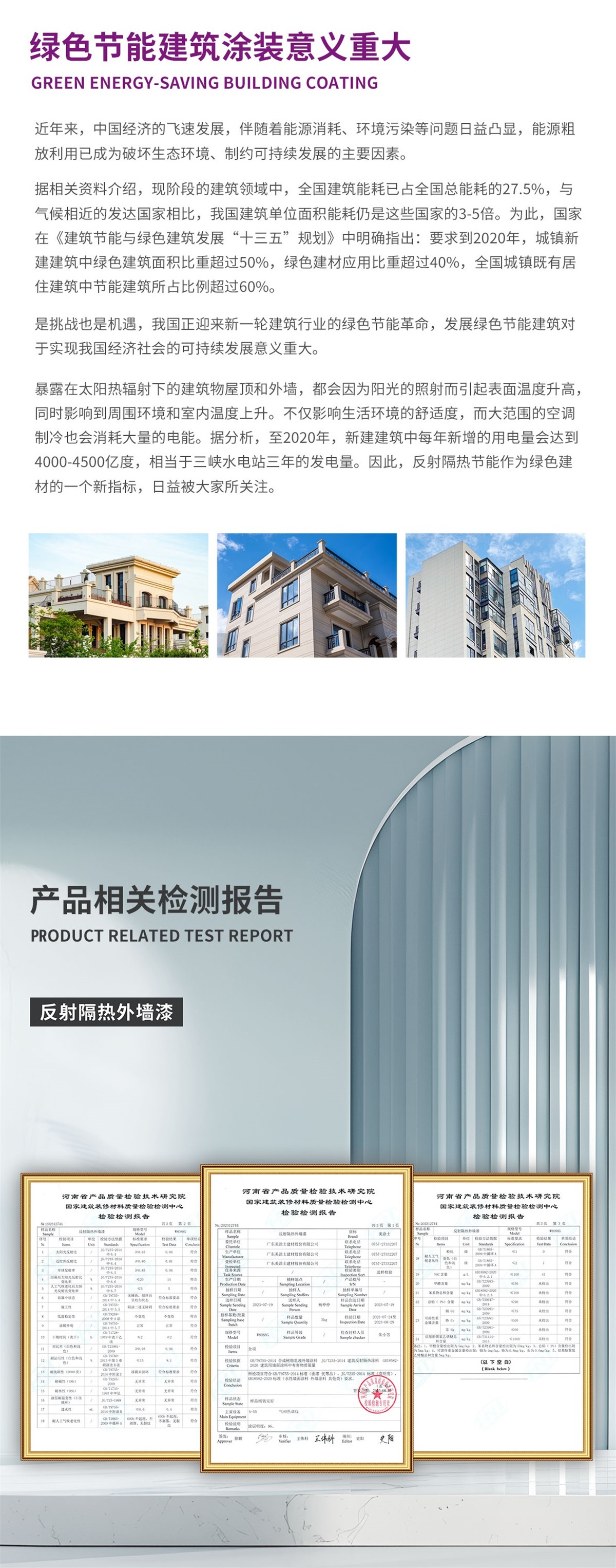 (1)涂層能夠反射紅外線能量,對(duì)建筑物起到反射隔熱的效果,能夠明顯降低建筑能耗。