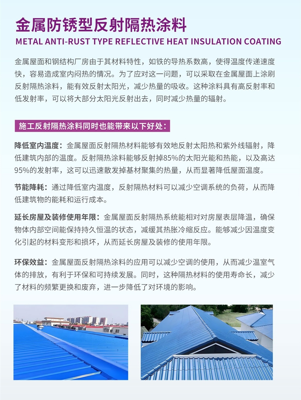 3、解決問題:廠房彩鋼瓦金屬屋面防腐、防銹、翻新、隔熱。